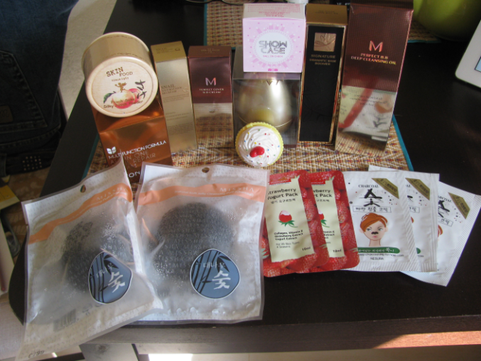 Skin79 Snail Nutrition BB Cream 15 мл., Missha Perfect cover 21 тон 20 мл., Tony Moly Egg pore silky smooth balm, Missha signature dramatic base boomer, Missha perfect deep cleansing oil 200 мл, Holika Holika Dessert Time Lip Balm спелый персик, Skinfood Peach Sake Silky Finish Powder, VOV showcase Ball on Cheek 1 тон, Mizon Multi function formula Snail healing cream 75 мл, Губка конняку Missha черная 2 шт., + полоски для носа и маска с клубникой