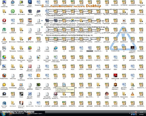 А э у меня такое безобразие))) Картинка все время слетает, да и из-за нехватки времени совсем нет желания убираться в компьютере)))