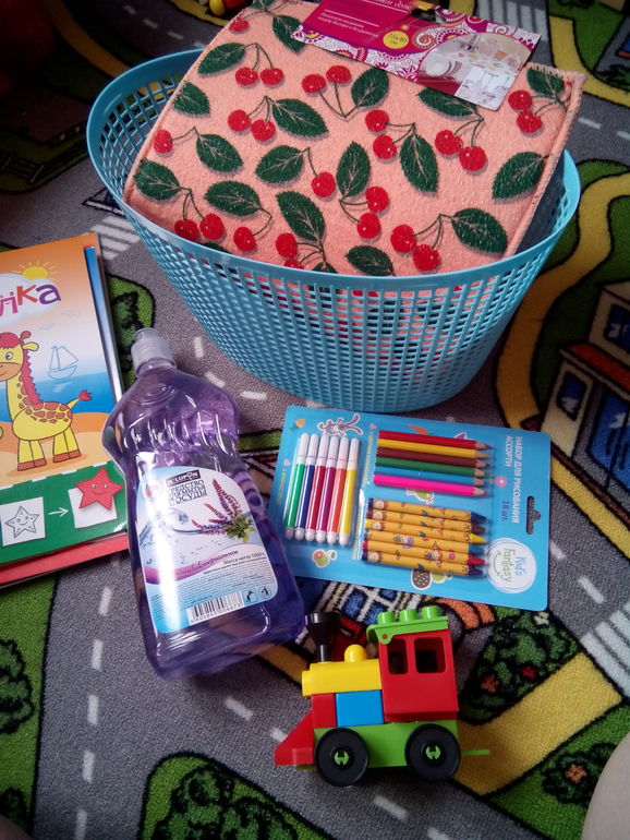 Наборчик рисующих разностей))) жидкость для мытья посуды и коврик для неё же. И корзинка меня покорила...