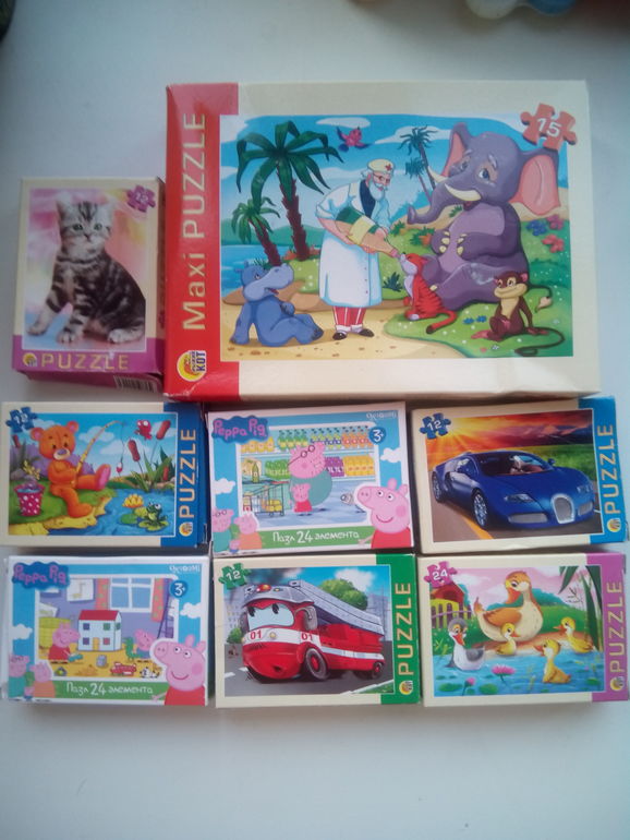 У Вовы огромный интерес к пазлам, просит собирать каждый день по многу раз, но сам пока не собирает, надо с мамой и папой. Ну ничего научится. Стоят копейки, а сколько радости😃