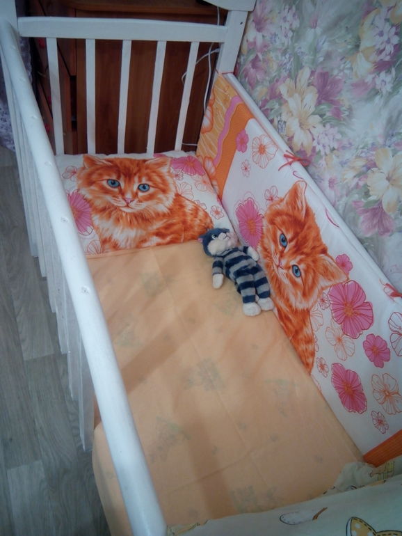 Про гв. Не просит не орёт, ночью спит, ттт мне пришлось сцеживаться. Спит в своей кроватке, сам залазит укрывается обнимает кота и спать. Очень важна сонная игрушка и я ему ещё постельку сшила, ну просто всё как он любит. А любит он рыжих кошек.