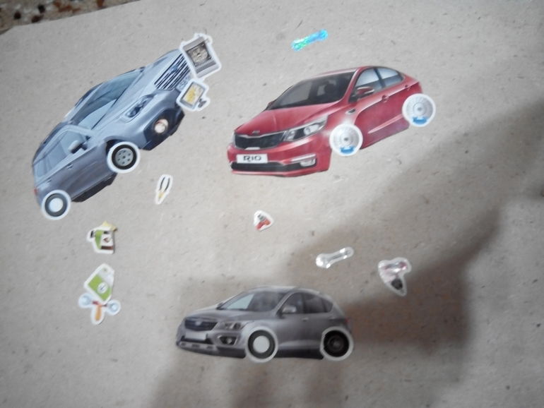 Новый опыт остаться на вечер с Вовой вдвоём. Учила его резать ножницами. Потом сама вырезала более ровно. Клеили машинки на лист, он их чинил наклейками.