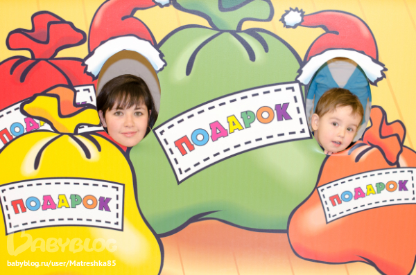 В связи с первой елкой решили ехать на машине. чтобы Саня хоть чуточку поспал, в результате выехали, чтобы приехать туда к 5, а приехали в 6:20!!! Ехали почти 3 часа!!! Очень жалко, что опоздали - хотелось погулять-посмотреть, какие развлекалки были в фойе.