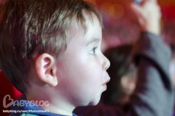 Представление Саня легко высидел все целиком, ему было ОЧЕНЬ интересно, хоть мы и далеко-высоко сидели. Все эмоции видны на фотках =)