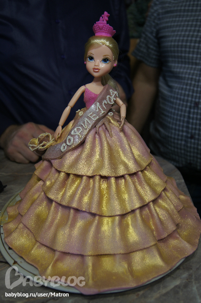Вот такой торт я хочу Софуле на ДР, правда не уверенна, что обычный крем будет держаться на кукле ,поэтому подумываю о мастике. Слово и самым материал употребляю впервые. Раньше вообще не знала о существовании оных и не задумывалась.