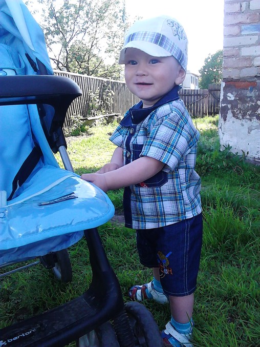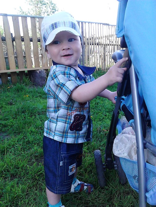 Сегодня стояла такая жара,что даже и не верится что это лето пришло.Зато Матюшке такая погода нравится,любит он на улице торчать. На собачек-кошек смотреть,куры вообще завараживают.Уже по тиху начал привыкать к чужим людям.Это мы у деда во дворе