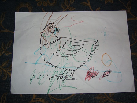 04.09.13 - пластилиновая лепка (отрывали кусочки., катали шарики и кормили курочку), фигурки - это печеньки для курочек, сделанные формочками