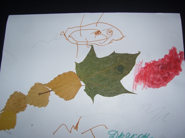 Дочка хотела дракона))) Мы конечно его сделали - из осенних листьев склеила сама и дорисовала) Мой только глаз)