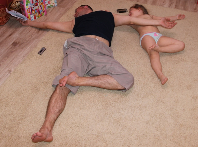 О!!! не могу не показать - Эльвира с папой делают какую-то гимнастику - папе надо, а Эльвира группа поддержки (я ржала не возможно!):