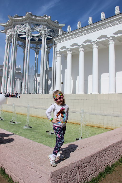 Мы отлично погуляли на 9 мая на ВВЦ) Ловили теплые денечки и были на игротеке - строили из деревянного конструктора колодец.