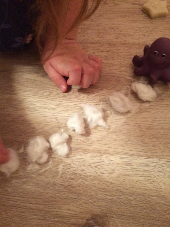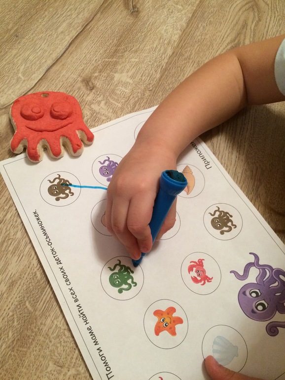 и соединили всех осьминожек (мне так понравилось как дочка это сделала - не просто каждого осьминожку к маме привела, а одной линией (как клеящим веществом настоящие осьминоги) соединила всех осьминожек и присоединила к маме! Люблю свою радость;)