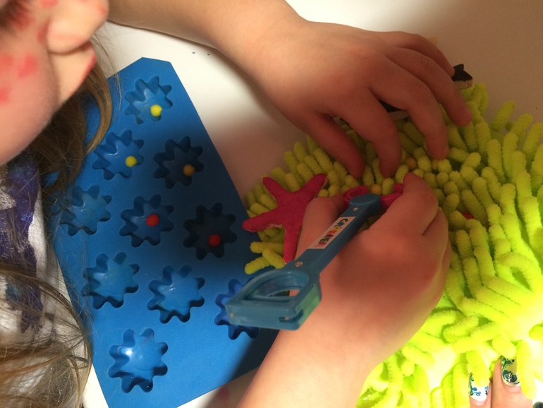 Конечно после моего рассказа, помогли ему собрать деток из водорослей в свои ячейки.