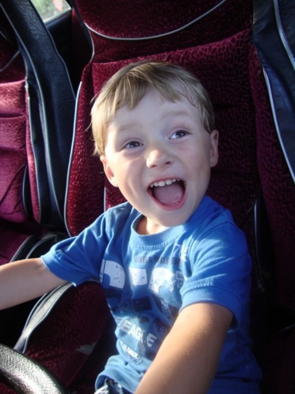 В этот день он во всех машинах посидел)))Любитель порулить :)