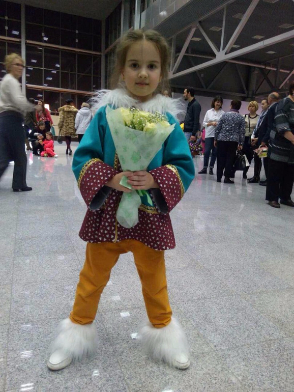 Прошел сегодня наш отчетный новогодний концерт . Эскимосы Ариша дарила цветы А. Духовой . Настолько ее это затянуло . Нужно было подарить и убежать со сцены , у нее включался стопор она встала перед ней и стояла смотрела минуты три на нее . Прибежала ко мне за кулисы радостная и кричит