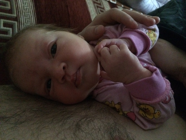 Дашунька у нас умничка! ❤️❤️❤️ Следит за игрушками, даже уже фиксирует взгляд)) может повернуть голову с одного боку на другой, если сфокусируется на моем или папином лице. Ждём когда же начнёт улыбаться наша красавица, пока только мимолетные улыбочки ловим)