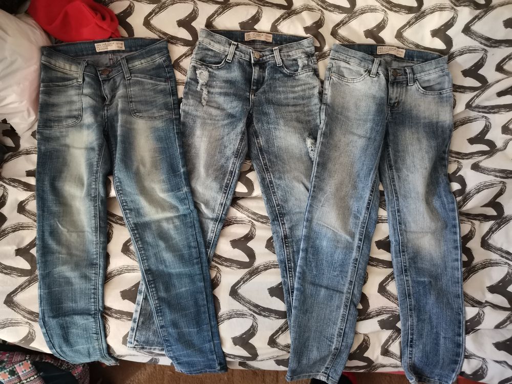 Три пары джинс. Зармер 140. По бокам есть резинки с пуговицами, чтоб регулировать. За три пары разом 700 р. СВАО, метро Свиблово или Бабушкинская.