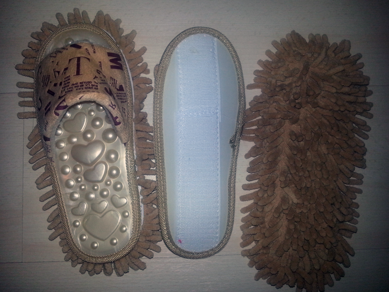 Я очень не люблю тапки... Фактически дома я надеваю тапки только когда мою полы, чтоб не ходить по мокрому... Но тут появляется следующая проблема - стоит пройти в тапках по вымытым полам - и остается мелкая, но заметная череда следов, особенно хорошо заметная на моем любимом светлом ламинате....
