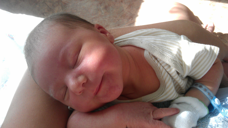 Вчера набил себе фингал, мазала ему ножки согревающим бальзамом(сопли опять), он захохотал и кинулся бровью на спинку кровати, сегодня встал- глаз весь опухщий и сине-красный... Раскрасился ко дню рождения..)