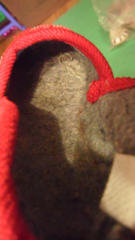 6) тапки красные, внешний вид хороший, но внутри на стельке войлок сбившийся (надо сделать самим стелечку другую). 15-15,5 см