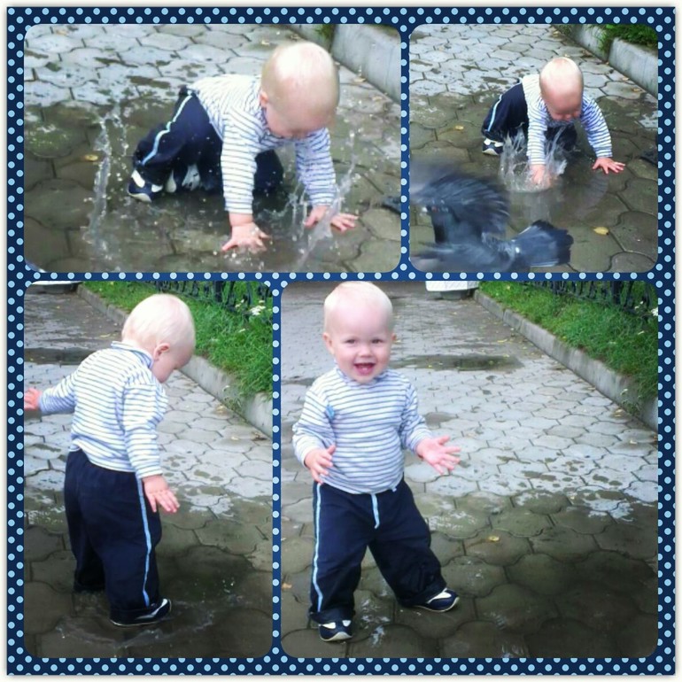 Как я рада,что мои до такого не додумались! Хотя Санька в таком возрасте упал в светленьком голубеньком Ленне в лужу) только одели, а с собой не было салфеток никаких... так и шли))) но целенаправленно меланхолично прогуливаться по лужам... держись,мать)