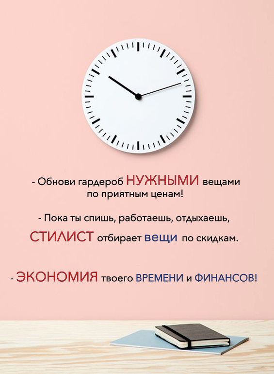- В порыве страсти и ажиотажа, пока многие скупают вещи лишь бы купить, вы будете покупать только то, что действительно нужно! То, что впишется в ваш гардероб, будет подходить вам (учитывается фигура, колорит, стиль, пожелания, бюджет) + вещь будет со скидкой!