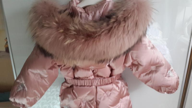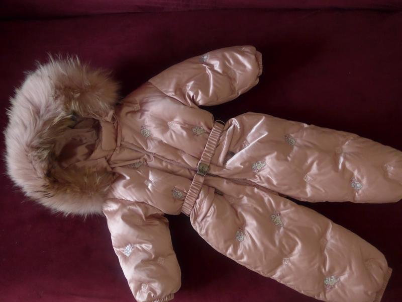 Комбинезон после одного ребенка, размер 3 года ( не маломерит), отлично до роста 102 см. Носили исключительно на выход, на смену было много верхней одежды , набит очень хорошо, невероятно теплый, на малышке сидит идеально. Нежный цвет(*пепельная роза), ткань одна из самых дорогих и прочных - расотеч, устойчива к затяжкам и загрязнениям.