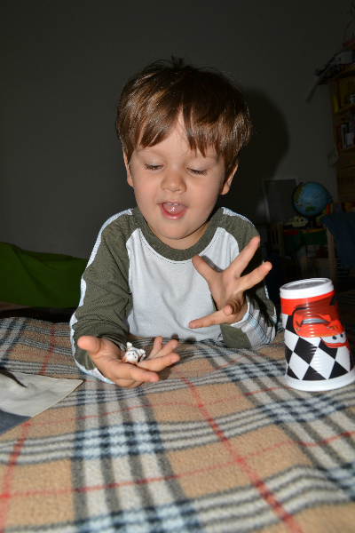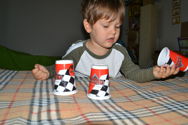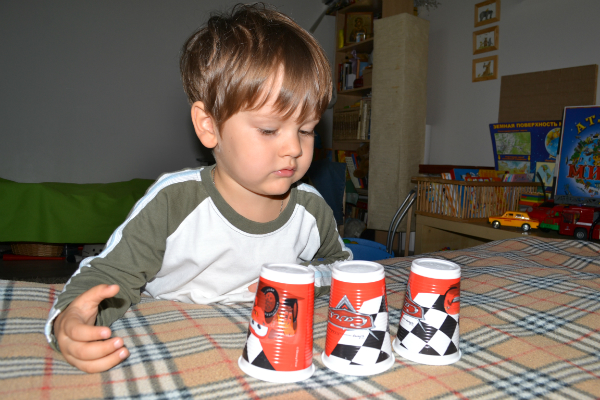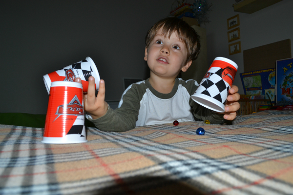 Сегодня весь день просит играть. В стаканчики - ему интересно угадывать в каком именно стаканчике, именно такой цвет?! У нас 3 шарика - 3 стаканчика. Конечно угадывает редко, но зато так увлеченно))) - "и хахочет, и хахочет, будто кто его щекочет)))"7