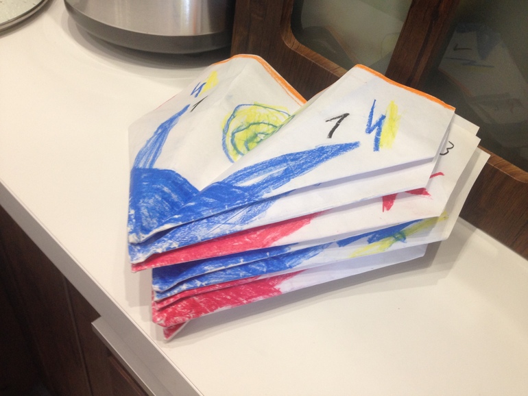 Илюша с оперативной скоростью производит самолеты. Гнёт бумагу с серьезным выражением лица и сосредоточенно расписывает крылья. Потом это все запускается, потом бережно храниться там где приземлилось. И процесс начинается сначала.