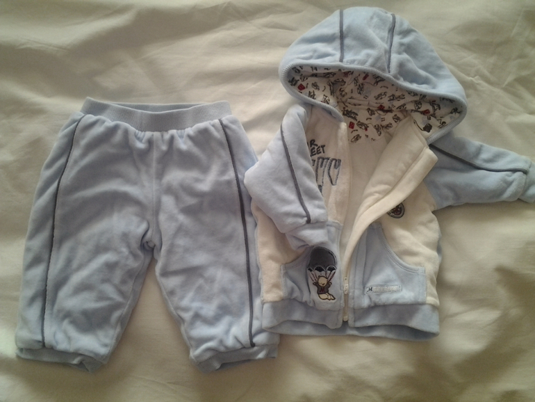 2. Суперский костюмчик ОЧЕНЬ мякгий и очень НЕЖНЫЙ. На штанищках внизу резиночки-манжетки (как у них пояс). Кнопок для смены подгузника нет. Размер написан на 9 месяцев. Мы начали носить с 7 месяцев. Длина ковточки (от шва капюшона) - 30 см. Штанишки 39 см. Цена 400 руб.