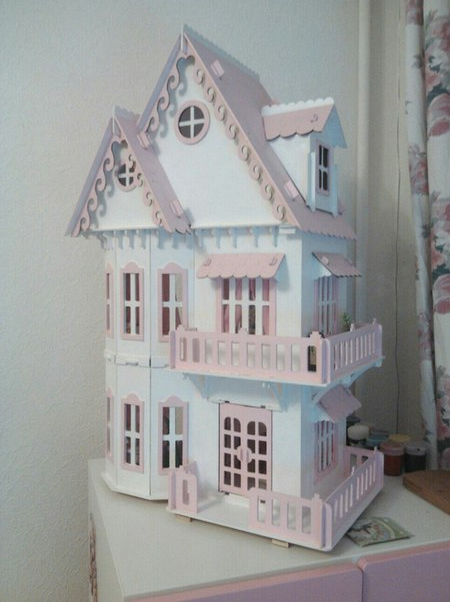 Домик очень большой по размеру (760х450х290 мм). Толщина стен 3 мм. Высота каждого этажа 21 см. Вес 2,5 кг. Подробная Инструкция по сборке.Конструкция очень прочная и ударостойкая. Собран вручную мастерами из экологически чистого материала(березовая фанера). Без использования клея!(вставляется в пазы).Можно также раскрасить его самостоятельно любой краской. Комнаты с мебелью (на фото), которые также выполнены вручную, можно приобрести отдельно. Сделано в России. Вся продукция сертифицирована.