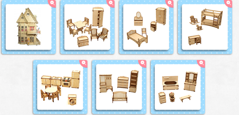 Цена домика -800р+15%=920рублей. Цена домика с полным комплектом мебели 1750рублей.