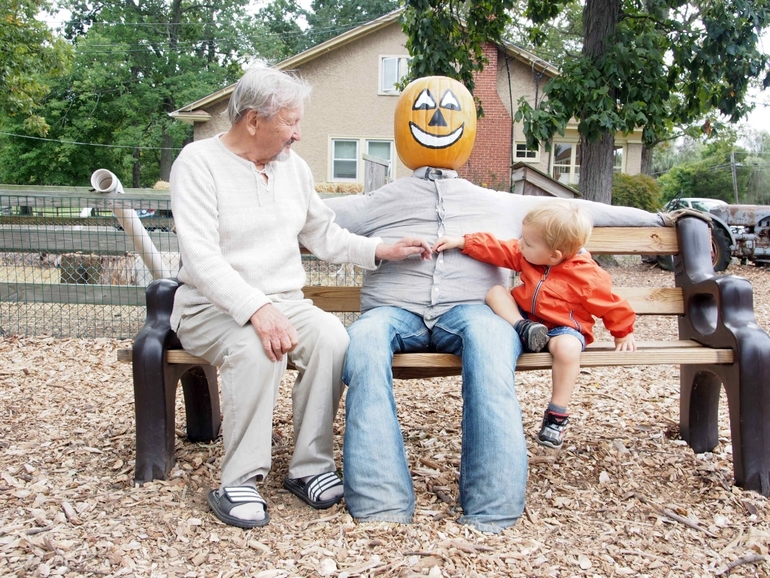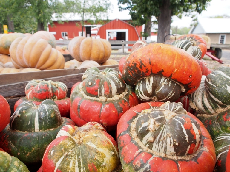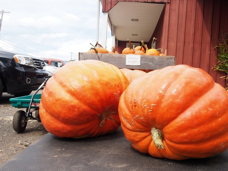 Открыли сегодня сезон объезда окрестных ферм. Заодно бабушку с дедушкой к американским традициям приобщили.