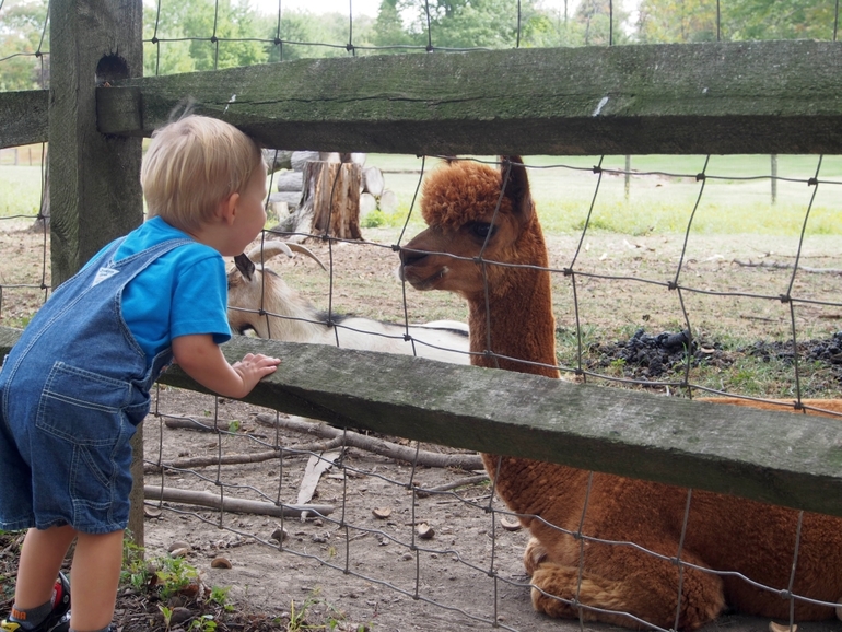 Укротитель диих зверей ))))). Когда Вова этим летом дорвался в калининградском зоопарке до контактгого загончика с козочками, я думала, что я его оттуда не вытащу ))). Закормил и заобнимал всех. Коров пока видели 1 раз и с безопасного расстояния.