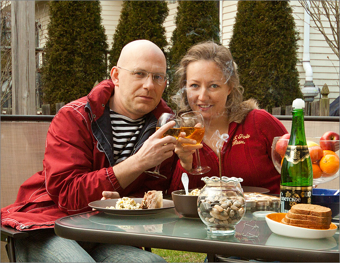 Во-первых, в четыре часа дня мы открываем шампанское, раскладываем по тарелкам оливье. И поднимаем бокалы. В это время у нас на родине куранты бьют полночь.