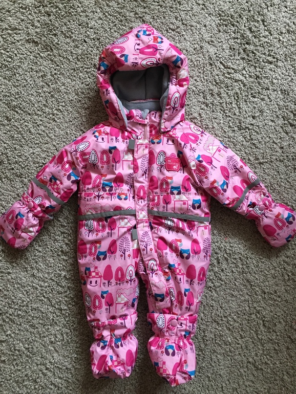 Комбинезон в отличном состоянии, постиран. Тёплый, внутри флис. Яркая расцветка, ножки и ручки на кнопках. Подходит от 0 до 6 мес. Зима.