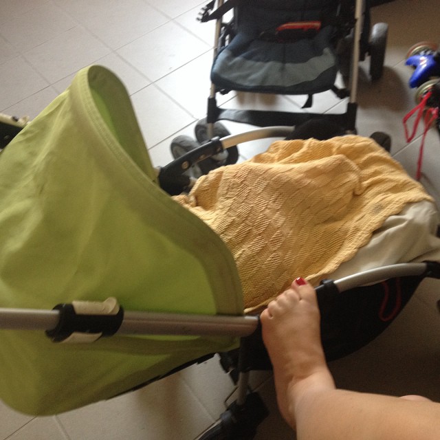Мама укладывает ребенка в походных условиях. Точнее, мама листает инстаграмм, пока ребенок засыпает... Да, она любит (как и я) чтобы ее легонечко покачивали, когда она засыпает :)