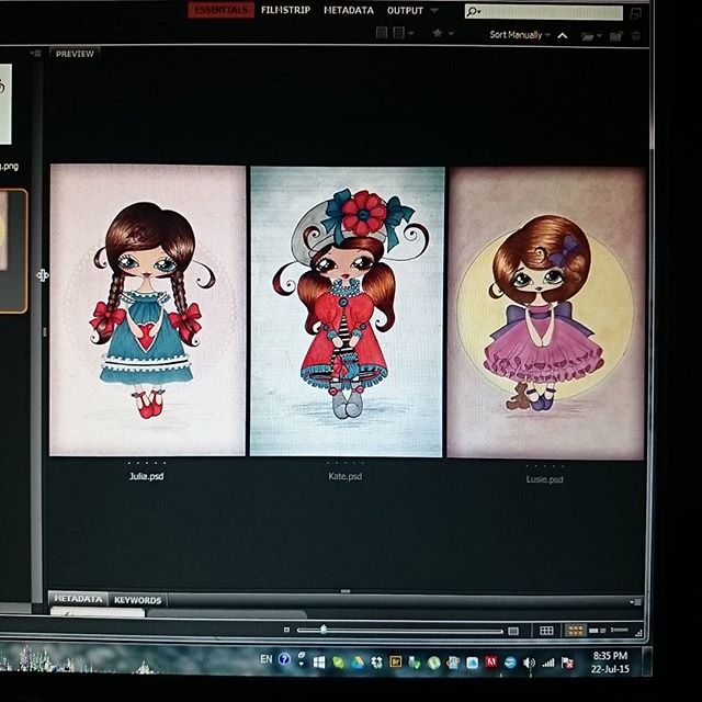 Наконец у меня дошли руки до моих девочек. Сейчас делаю картинки 20х30 в рамку и на стенку. Они будут напечатаны на фото бумаге. Планирую еще открытки и наклейки. Если не сойду с ума от жары, то еще и набор раскрасок. Всего в этой серии будет десять девочек. Так же планирую рисовать на закпз по фотографии. То есть, вы мне фото доченьки, а я рисую с нее девочку. Повторяю цвет глаз, волос, прическу, одежду, но в стиле такой вот куколки. Пераым троим заказчикам скидка 50% с условием, что я выставлю пример у себя в инстаграме. Пишите в личку.