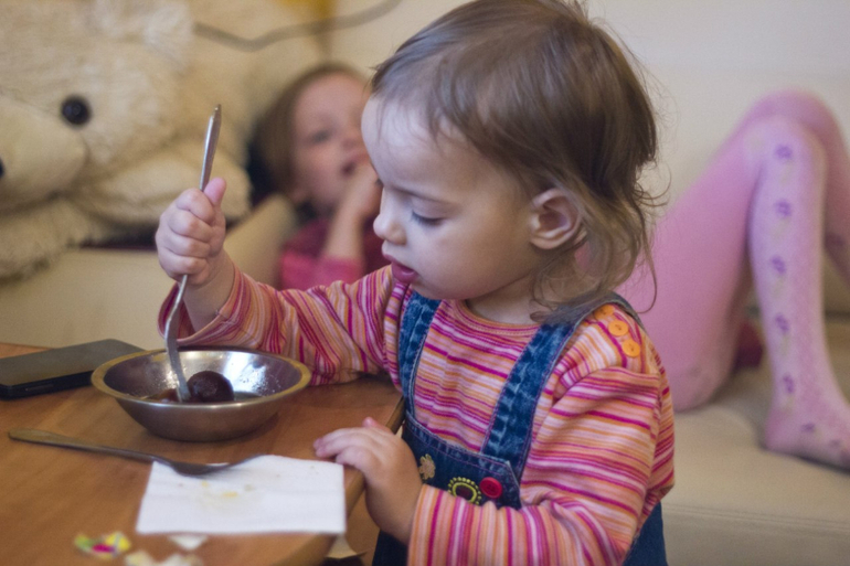 толстая довольная я, поедающая нечто, сделанное из сухого молока вот так