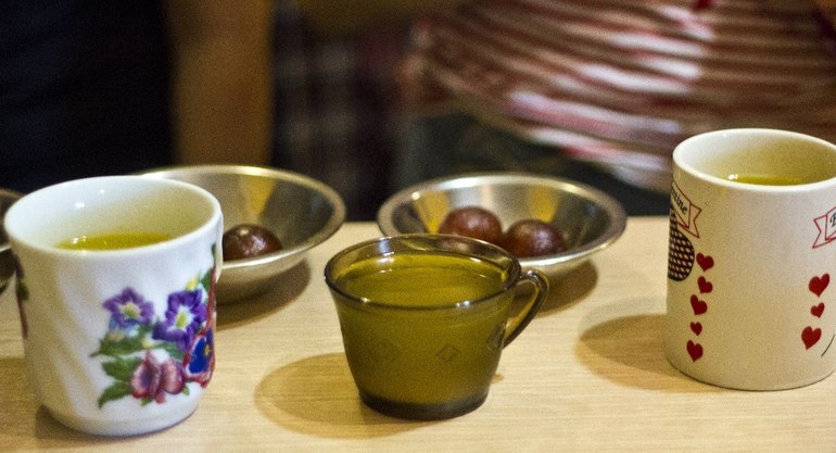 Кстати, традиционным чаем нас на курсах ни разу не поили! Чай из куркумы, имбиря, базилика, еще каких-то трав. Вкусы просто потрясающие!!!