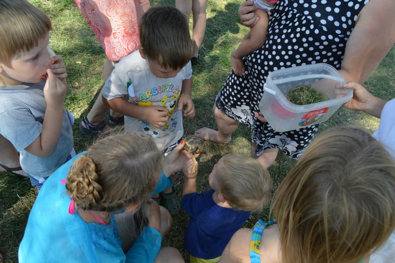Что еще? Ах, да, общались с различной живностью) В том числе, с черепахой, привезенной одной девочкой из дома. Черепаха потерялась, благополучно найдясь через сутки примерно) Везучая однако!
