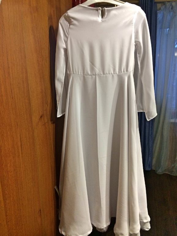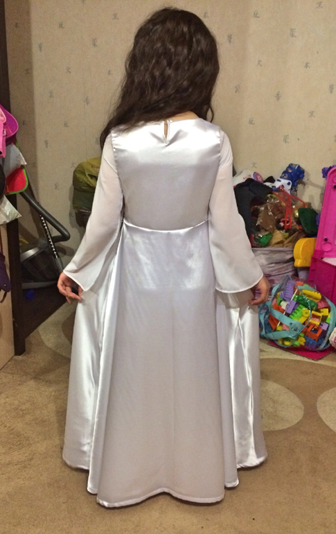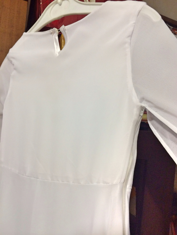 Сбоку у белого платья потайная молния, на спинке у горловины "капелька", чтоб можно было свободно одеть. Здесь платье полностью с изнанки, не отглаженное, сори, все на бегу...
