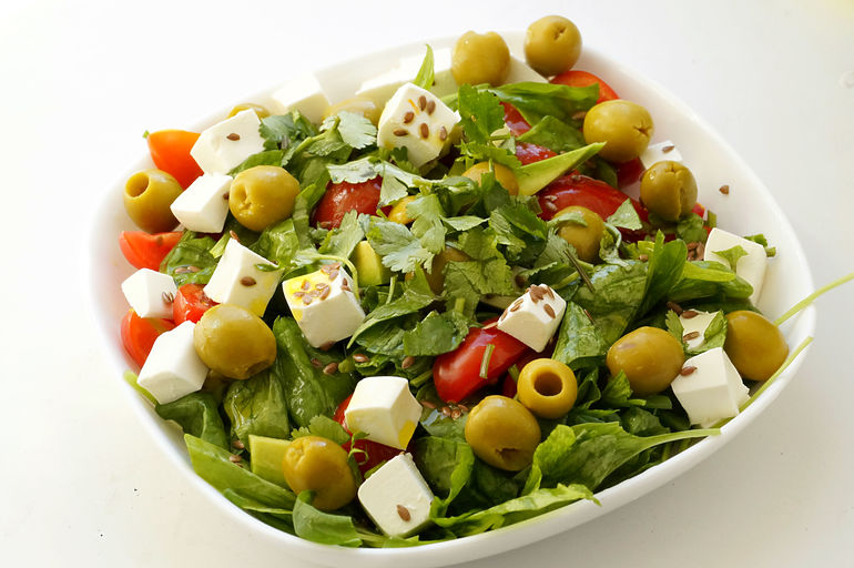P.s. Шпинат, кинза, помидоры, фета, авокадо, оливки, льн. семечки