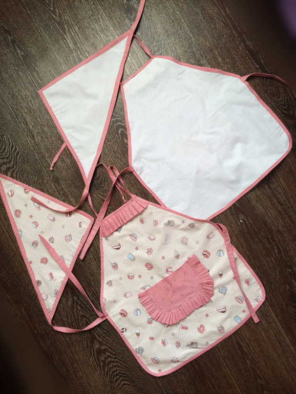 А вообще началось все с этих фартучков с косынками. Я специально вызвалась их шить, так как в тот момент мне было лень садится за шитье, а это был очередной пинок. Ненавижу ленится(