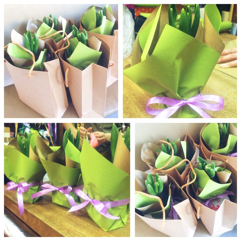 В подарке главное, правильно - внимание, а ещё эстетическое удовольствие. Кто бы знал, какой прилив положительной энергии я испытываю, делая подарки. И для этого не обязательно тратить большие деньги. Раффаэллка(150руб)+луковичка гиацинта(90руб)+ крафтовский пакет 45руб. И там пара копеек на бумагу и ленточки +фантазия. Подкидываю идеи, вдруг кому понадобится в предверии праздника.