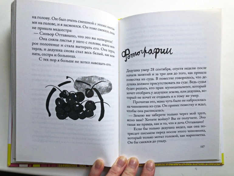 « Мой дедушка был вишней» Анжела Канетти. Эта книга вошла в список выдающихся книг для детей «Белые вороны», составляемыйМеждунарлдной мюнхенской юношеской библиотекой. Она очень трогательная и местами я просто рыдала и не могла сдержаться. Она о наших бабушках, дедушках, сколько доброты, любви, спокойствия счастья и вселенской мудрости дают нам наши любимые старики. Местами смешная, реалистичная и какая то родная. Книга будоражит разные чувства, но я рада, что мы ее прочли.