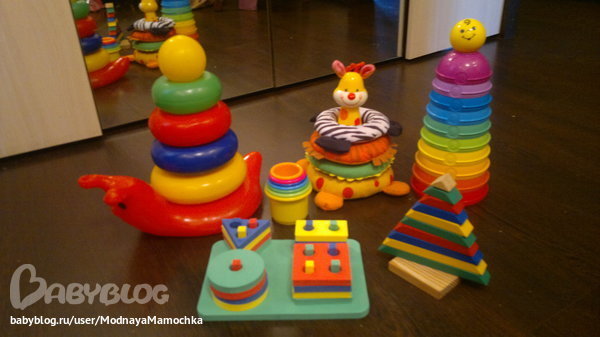 С пирамидками Самирка не просто на "ты", а даже на "эй ты!". Собирать их любит и по нескольку раз. У нас вот такие. Любимая - Улитка и мягкие.