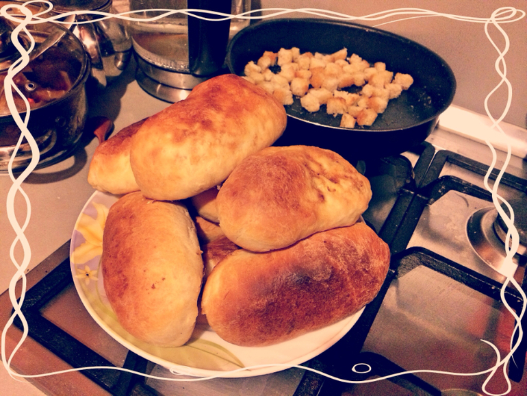 Сегодня весна огрела 15-16 градусами, как впрочем и вчера. И у меня видимо сработали мои "весенние рефлексы" и я быстренько сообразила пирожков с картошкой, яйцо/рис/зеленый лук и с персиками(в джеме консервированные). Кстати есть я их практически не ем, мне их готовить почему то больше нравится, а так конечно тяжелая пища. Дети таскают и угощаю всех.дети как всегда помогали чем могли: рас сыпали муку, ползали под ногами и спрашивали в миллионный раз, когда будет готово. Вот такие пироги...