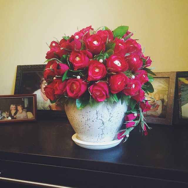 Давно не делала вазы. Сегодня представилась такая возможность. 55 роз и 20 бутонов на юбилей #букетизконфет #ручнаяработа #розыизконфет #конфетныйбукет