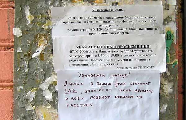 они еще любители утром в день отключения вешать объявления об этом)) Россия ж) Ж))