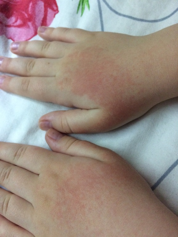у моего такие руки зимой постоянно - даже в крагах не мерзнут вроде - а вот такие же и в этих же местах. Мажу кремом... На холод реакция